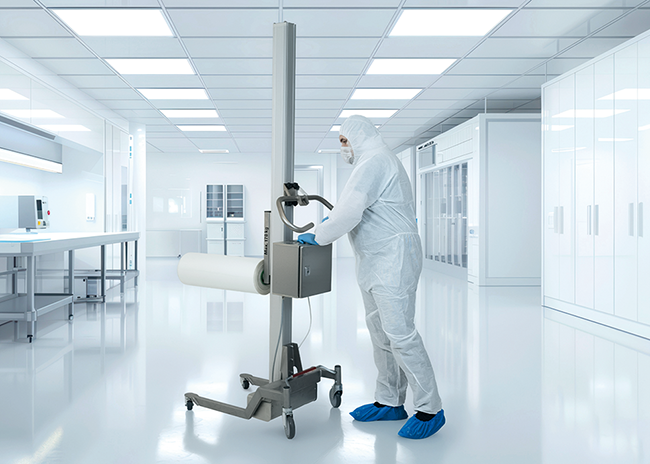 Mit dem neuen lift2move cleanroom bietet Expresso ein mobiles Hebe- und Transportsystem für Reinräume, das nach ISO 14644 zertifiziert ist. Das Vorschubgerät erweitert die lift2move-Modellreihe und ist ausgelegt für den Einsatz in der Elektronik- und Halbleiterfertigung sowie in den Forschungsabteilungen vieler anderer Branchen. Das System ist mit einem elektrisch angetriebenen Hubmast und einem Ausleger zur Aufnahme von Werkstückträgern, Bauteilen oder Behältern ausgestattet. Es bewältigt Nutzlasten von bis zu 180 kg und kann seine Last frei im Raum bewegen sowie über einen Hubweg von 1 600 mm heben und senken. Als Reinraum-zertifiziertes Hebe-Senk-Gerät ist das System nahezu vollständig in Edelstahl und Aluminium ausgeführt. Alle Oberflächen ...