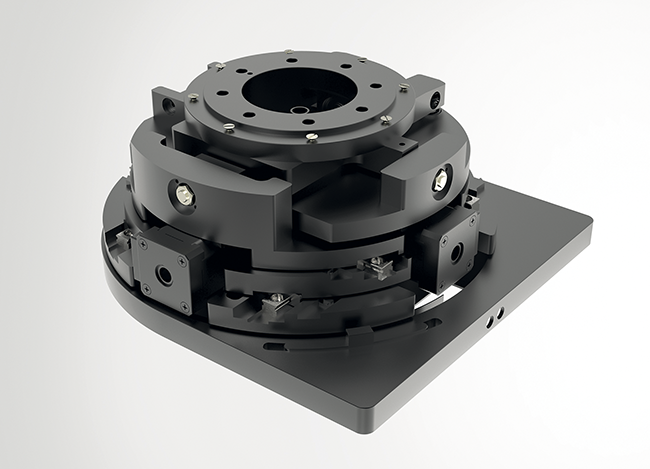 Steinmeyer Mechatronik, Teil der Steinmeyer-Gruppe, stellt das MP220-4 vor, ein hochpräzises XYZ-Tip-Tilt Positioniersystem für optische und aktive Ausrichtprozesse in der Optik- und Halbleiterfertigung. Nach Angaben des Unternehmens bietet das System Submikrometer-Präzision, Wiederholgenauigkeit von ±0,5 μm (linear) und ±0,003° (rotatorisch) sowie eine Traglast bis 10 kg. Es ist kompakt (235×220×100 mm) und eignet sich für Reinraum- und Durchlichtanwendungen. Das System kombiniert lineare Bewegungen in X/Y mit Kippbewegungen um die X- und Y-Achsen. Eine spielfrei vorgespannte Kardan-Kinematik und hochpräzise Achsen ermöglichen präzise Justagen, z. B. für Optiken, Laser oder Wafer-Substrate. Es ist skalierbar und flexibel konfigurierbar, unter anderem für Reinraum- oder Vakuumanwendungen. www.steinmeyer-mechatronik.de
